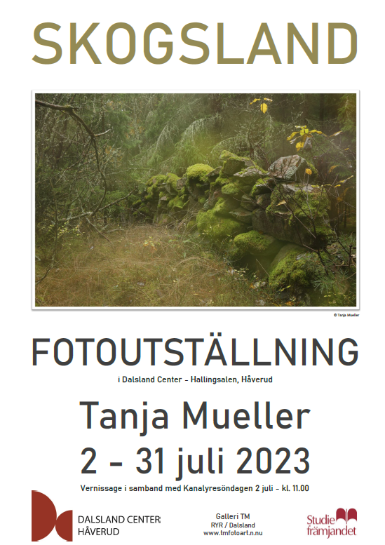 Tanja Mueller är en dalsländsk fotograf och konstnär. I sommar ställer hon ut sin fotokonst i Hallingsalen, Dalsland Center. Utställningen håller öppet 2-31 juli, ordinarie öppettider för Dalsland center är kl 10-19.
